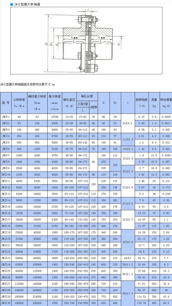 JMⅡ型無沉孔基本型膜片聯(lián)軸器